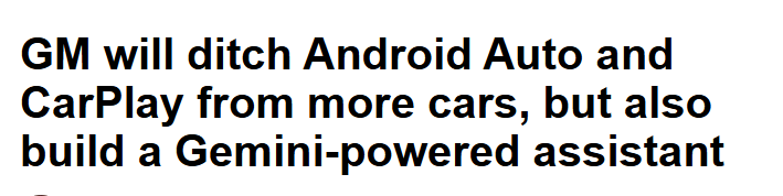【环球网科技综合报道】10月23日消息,据9to5Google报道,通用汽车继续推进移除其旗下车型的 Android Auto 和 CarPlay。这一举措不仅限于电动汽车,还将涵盖未来的燃油汽车。与此同时,该汽车制造商还在打造基于 Gemini 的语音助手。