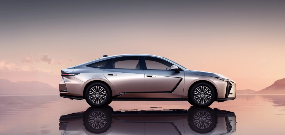 车身侧面通过双色侧裙与凌厉腰线营造出类似导流板的运动效果,车身长宽高达到5140/1920/1555mm,轴距2950mm,混动版标配18英寸轮圈,纯电版则将搭载21英寸轮圈。